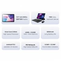 الشاشة حجم الشاشة 11 انش نوع الشاشة INCELL أو IPS LCD دقة العرض 1280*800 في كسل المعالج نوع المعالج Octa Core السرعة 2.0GHz نظام التشغيل Android 15 الشبكة يدعم 5G الواي فاي 5G WiFi مدعوم عدد الشرائح شريحتين SIM الذاكرة الداخلية 512 جيجابايت الذاكرة العشوائية Ram 8 جيجابايت أو 12 جيجابايت الكاميرا الخلفية 13 ميجا في كسل الكاميرا الأمامية 8 ميجا في كسل سعة البطارية 8000 مللي أمبير نوع البطارية ليثيوم