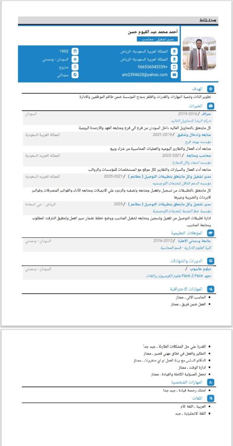 لأي موقع وظيفي لا يشترط اداري، خبرة أكثر من 12 سنة في المبيعات والإدارة كصاحب محلات لمدة 7 سنوات، ومدير فرع شركة زهور الريف للعطور بالمملكة العربية السعودية محافظة الجوف سنتين وعلى دراية بكل المهام من الكاشير الى اعداد التقارير، ومدير فرع شركة كازيون ماركت في مصر سنتين، مندوب بيع شركة فرايداي مصر لمدة سنة، و4 سنوات فندقة كمدير فندق أطياف الجوهرة بالقريات في السعودية وعلى دراية ببرنامج نزيل للتأجير