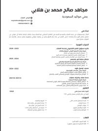 مجاهد بن هلا بي يمني مواليد السعودية 23 سنة التعليم ثانوية عامة الإقامة سارية وأحمل رخصة قيادة أجيد استعمال الحاسب الآلي والكاشير أتحمل ضغط العمل والمسؤولية وأجيد أساسيات التصميم عملت بائع ومسؤول متجر الالكتروني في معرض أثاث وأواني منزلية لمدة سنة وعملت مشغل مكينة قص لايزر ومصمم في شركة دعاية واعلان لمدة سنة ومندوب توصيل طرود سنتين