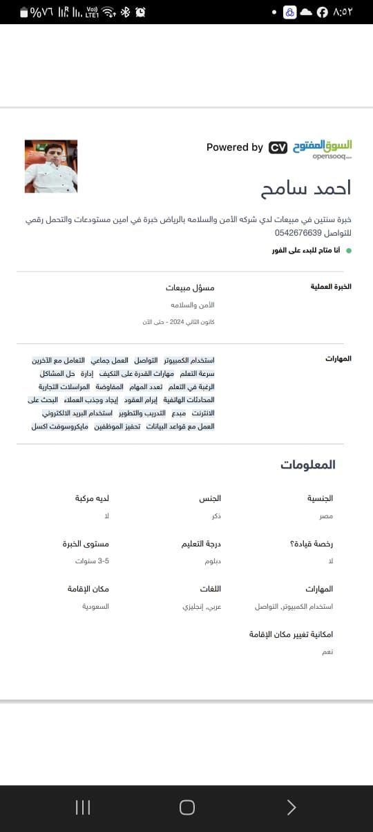 ابحث عن عمل بمجال الأمن والسلامة خبرة 4 سنوات بالمبيعات وادارة المستودعات