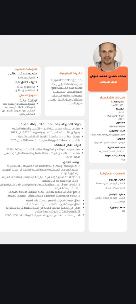 مصطفى 35 عام لي سبع سنوات في السعودية لدي خبرة جيده في عدة مجالات أكثرهم مجال الاستقدام خمس سنوات عندي خبرة أيضا في التسويق والمبيعات والمشتريات والسكرتارية والأعمال المكتبيه وخدمة العملاء ولدي رخصة قيادة