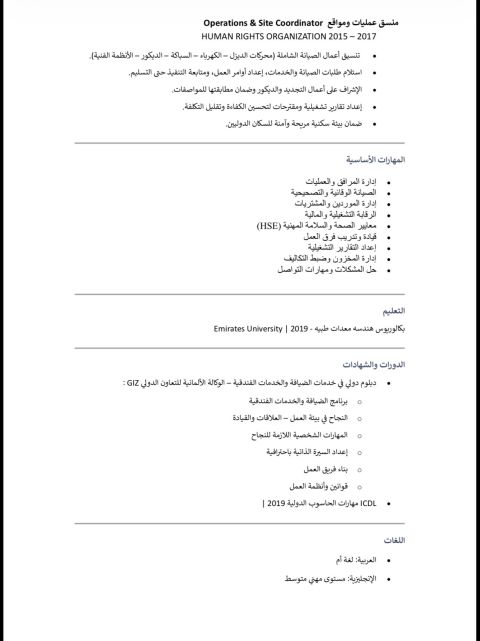 بدر الدين ذو خبرة في خدمة العملاء والخدمات الالكترونية أتميز بمهارات تواصل ومرونة عالية عملت في المحلات التجاريه والسوبر ماركت والكافيهات وأجيد الانجليزية وامتلك اهتماما بالمبيعات والقيادة الخاصه وغيره كمشرف مصانع أو مستودعات أسعى لفرصة تطوير مهني