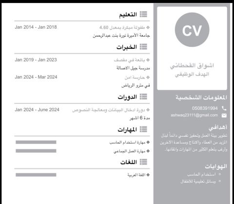 أنا أسكن في الرياض، سودانيه خريجة نظم معلومات محاسبية، وابحث عن فرصة عمل في أو تدريب في مجال ادخال وتحليل البيانات لدي خبرة في Excel وPower BI وإدارة قواعد البيانات. ومجال خدمة عملاء حاصلة على شهادة تدريبية (2025) وامتلك مهارات تواصل قوية. مستعدة للعمل فورا والالتزام التام. أو للتدريب