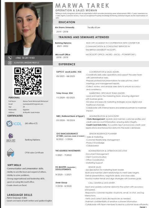 Sudanese, 21 years old, based in Jeddah, ready to work in any role. Prepared for packing, stocking, operations, recording, coordination, assistance, administrative or marketing support, and any tasks requiring an active and responsible person. Skilled in computer use and office programs, experienced in customer service, graphic design (prints, ads, posters) and daily task organization. Committed