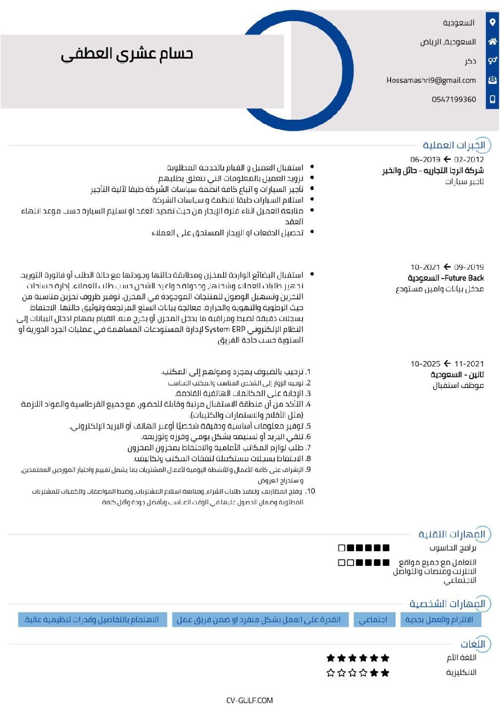 أنا مصري موجود في الرياض ابحث عن عمل خبرة أكثر من أربع سنوات في مجال تأجير السيارات خبرة أكثر من خمس سنوات في مجال الفنادق موظف استقبال وعملت كذلك مدخل بيانات وأمين مستودع لدي خبرة كافية ببرامج التأجير ودراية جيده بالكمبيوتر برنامج اكسل وورد أتحمل العمل تحت الضغط والانصهار في الفريق جاهز للعمل فورا إقامة سارية