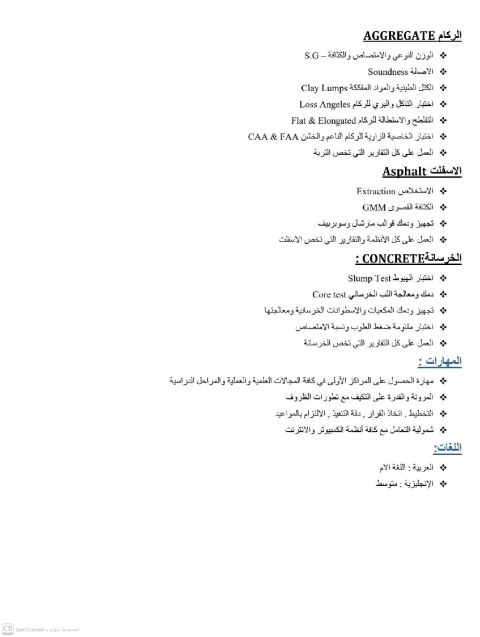 مهندس جيولوجيا هندسية متخصص في ضبط جودة مواد الطرق. خبرة عملية في اختبارات التربة والركام والاسفلت والخرسانة وفق المواصفات الفنية. خبرة في مراقبة الانتاج بالكسارات والخلاطات، اعداد التقارير الفنية، وضمان مطابقة المواد للمواصفات بحسب الكود السعودية
