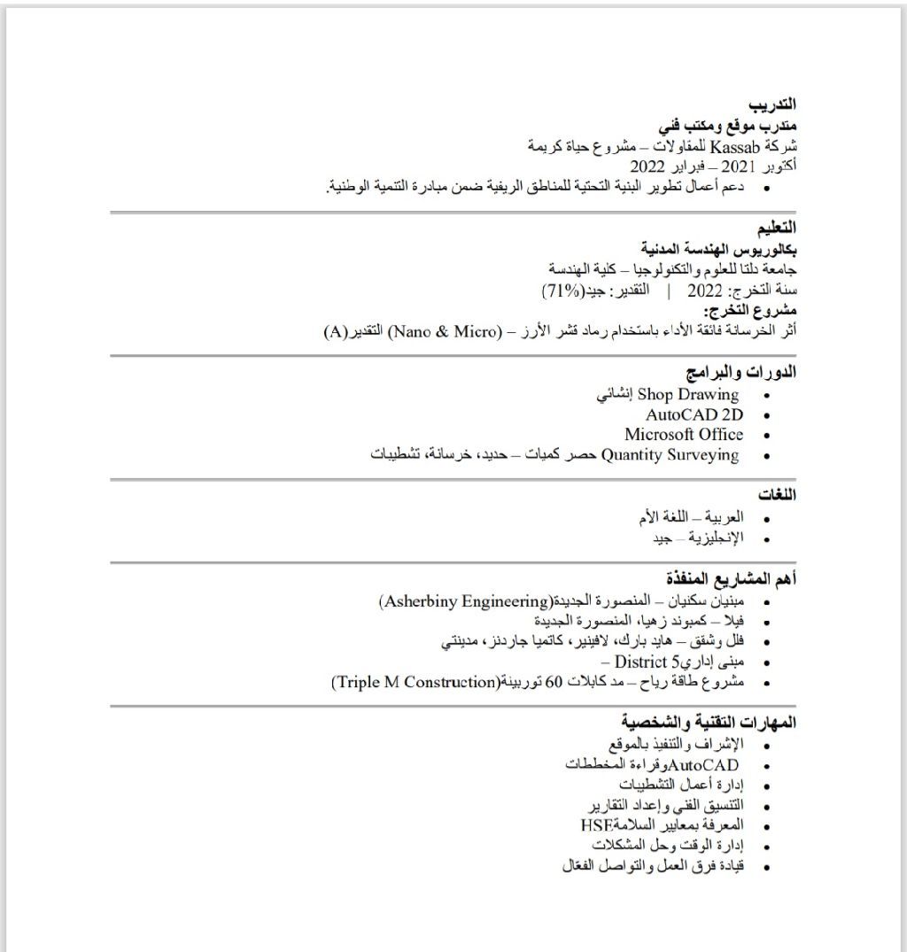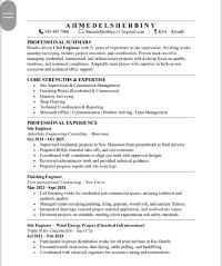 مهندس مدني خبرة أكثر من 3 سنوات في الانشائات والتشطيبات حاصل علي دوره مكتب فني (shopdrawing asd + حصر كميات) ومعي إقامة سارية حتى 12 / 2026
