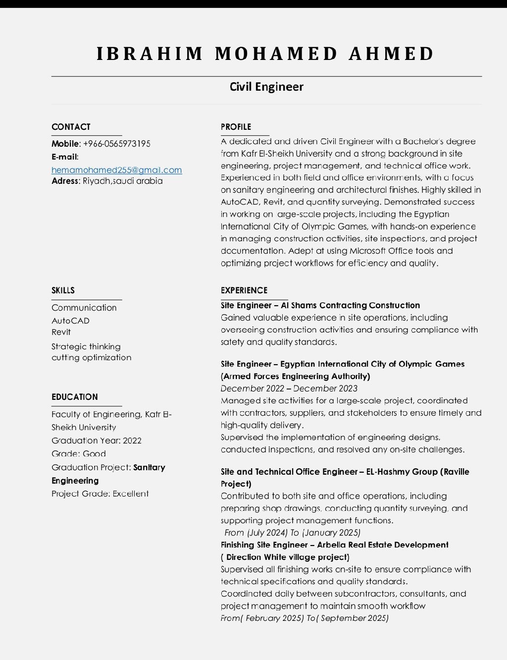 مهندس مدني (خبرة ثلاث سنوات) لدي خبرة في أعمال التشطيبات والانشاءات الخرسانية والمكتب الفني