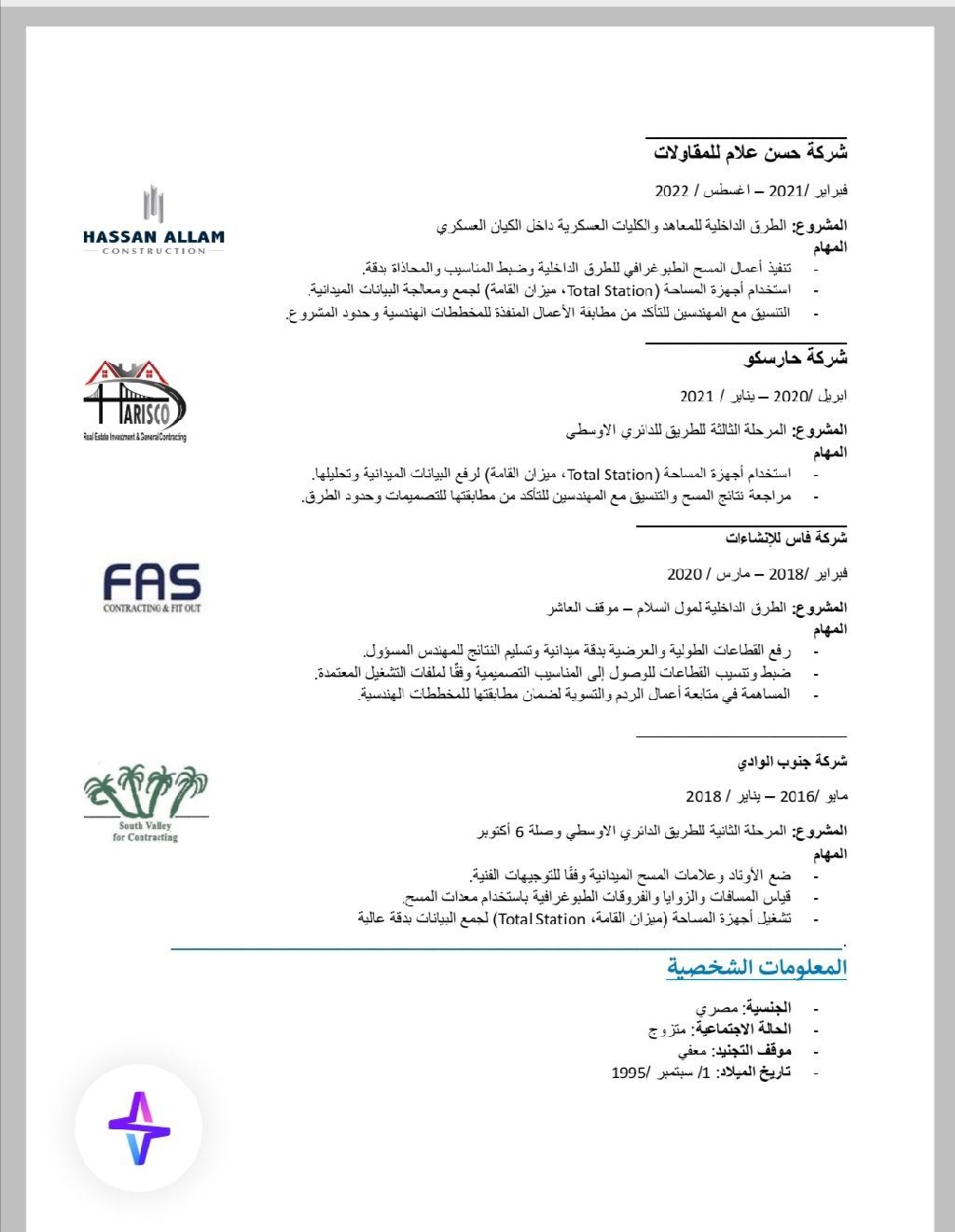 مساح ومراقب خبرة 10 سنوات في أعمال المساحة والاشراف عملت بمشاريع كبيرة إنشاءات وبنية تحتية ولاند سكيب اعمل علي اجهزة المساحة المختلفة والبرامج الهندسية. متاح للعمل فورا وموجود في الرياض