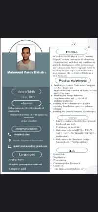مهندس مدني دفعه 2016 خبرة في مجال التشطيبات والخرسانات وأعمال الترفيه مسجل لدي الهيئة السعودية للمهندسين متاح نقل كفالة