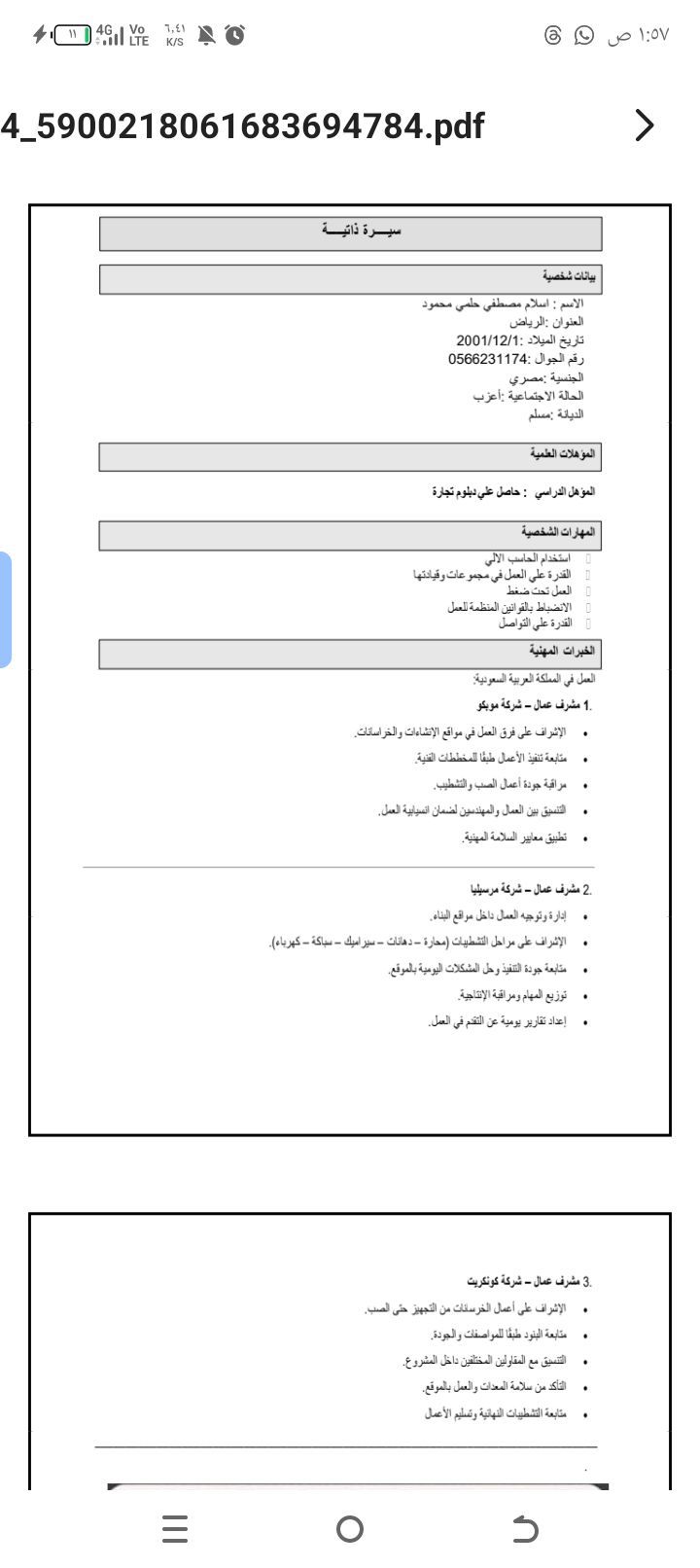 الجنسية مصري مشرف عام السن 26 سنة اشتغلت في أكبر شريكات في السعودية وشهادات خبرة