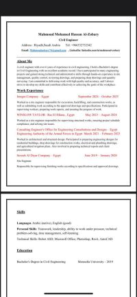 مهندس مدني مصري مسجل لدي الهيئة السعودية للمهندسين تنفيذ وضبط جودة وحصر كميات خبرة 6 سنوات في الإنشاءات والتشطيبات من أعمال التربة ومراحل العناصر الخرسانية الى جميع بنود التشطيبات حتى التسليم النهائي. أجيد البرامج الهندسيه. أجيد استخراج مستخلصات المقاولين وحصر الكميات بالموقع والتنسيق بين جميع بنود التنفيذ وكافة الأعمال الورقيه. يوجد إقامة سارية. مقيم في الرياض. جاهز للعمل فورا