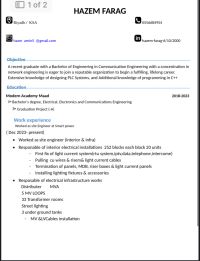 ابحث عن فرصة عمل كمهندس كهرباء MEP تمديد كابلات وانارة شوارع وموزعات ونظام fire موجود في الرياض خبرة سنتين ونصف في مشاريع العاصمة، ياريت التواصل / ولكم جزيل الشكر