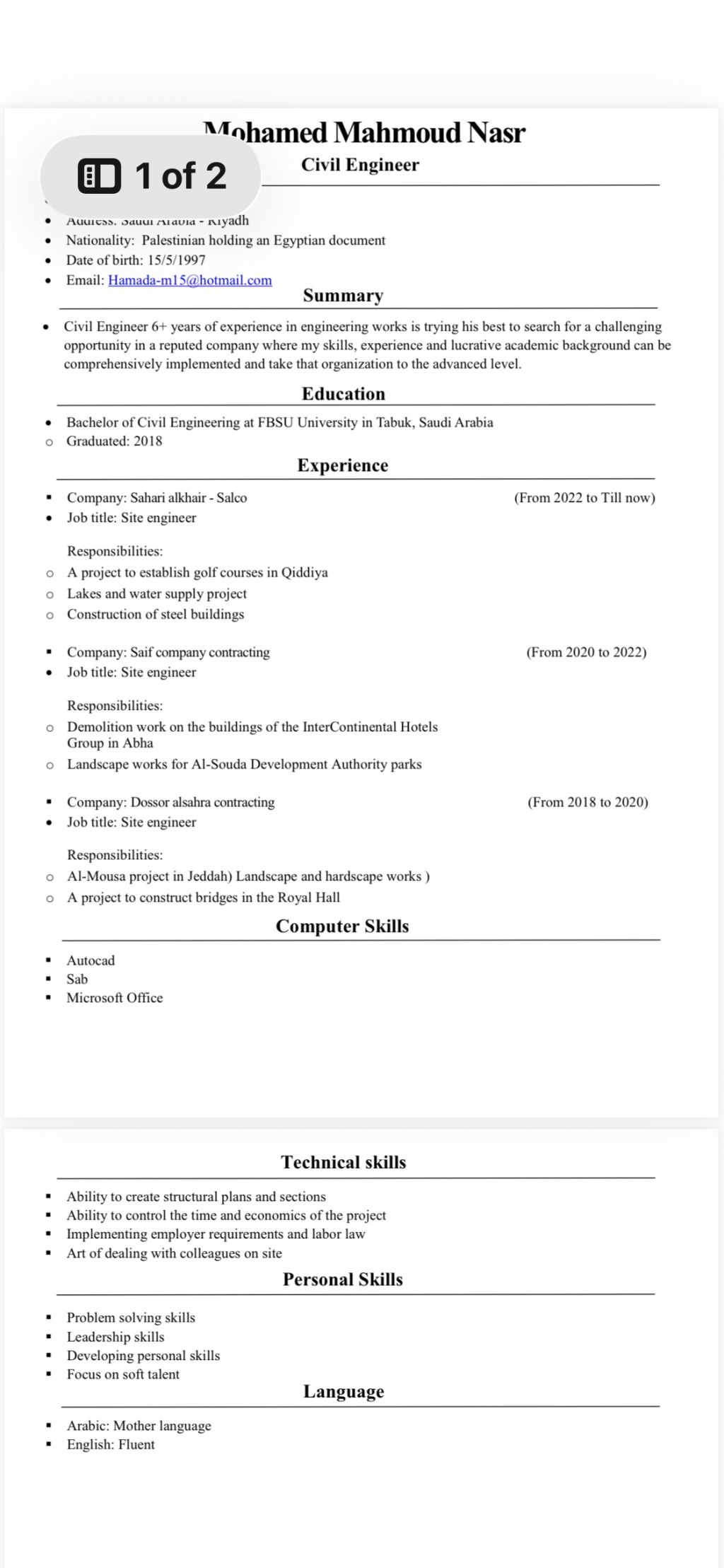 مهندس مدني خبرة 8 سنوات تم العمل في مشاريع القدية والدرعية والمكعب (لاند سكيب - هارد سكيب - مباني - ستيل استركشر - بنية تحتية) جاهز لمباشرة العمل متواجد في الرياض