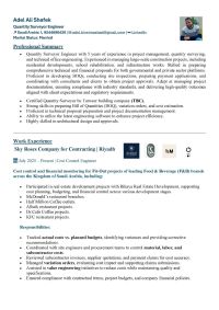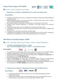 مهندس حصر كميات وتكلفة (Quantity Surveyor & Cost Control) خبرة في مشاريع Long Term وFit - Out اعداد BOQ، Cost Estimation، ومتابعة التكاليف متواجد بالمملكة وجاهز للعمل