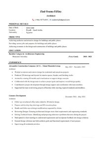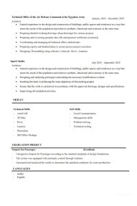 مهندس معماري خبرة 3 سنوات - عمل تصميمات داخلية وخارجية 2D و3D باحترافية - أقدم خدمة تصميم معماري متكاملة تشمل التصميم والاخراج واللوحات التنفيذية (shop Drawing) والاشراف علي تنفيذها - أستخدم برامج (Revit - Cad - 3ds Max - Lumion) خبرة 3 سنوات في المكاتب الاستشارية