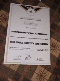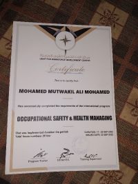 أنا أخصائي صحة وسلامة مهنية حاصل على بكالوريوس في الحماية المدنية وعملت بمطار الخرطوم الدولي في قسم السلامة وفندق كورينثيا أيضا وحاصل على شهادات ودورات متخصصة في مجال الأمن والسلامة