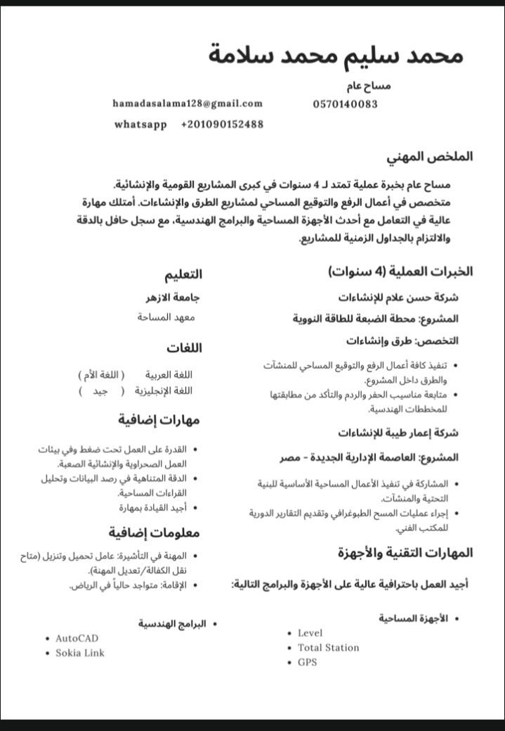 كان الله في عون العبد ما دام العبد في عون أخيه بسم الله أنا مساح عام متواجد في الرياض ابحث عن فرصة عمل واسأل من الله التوفيق