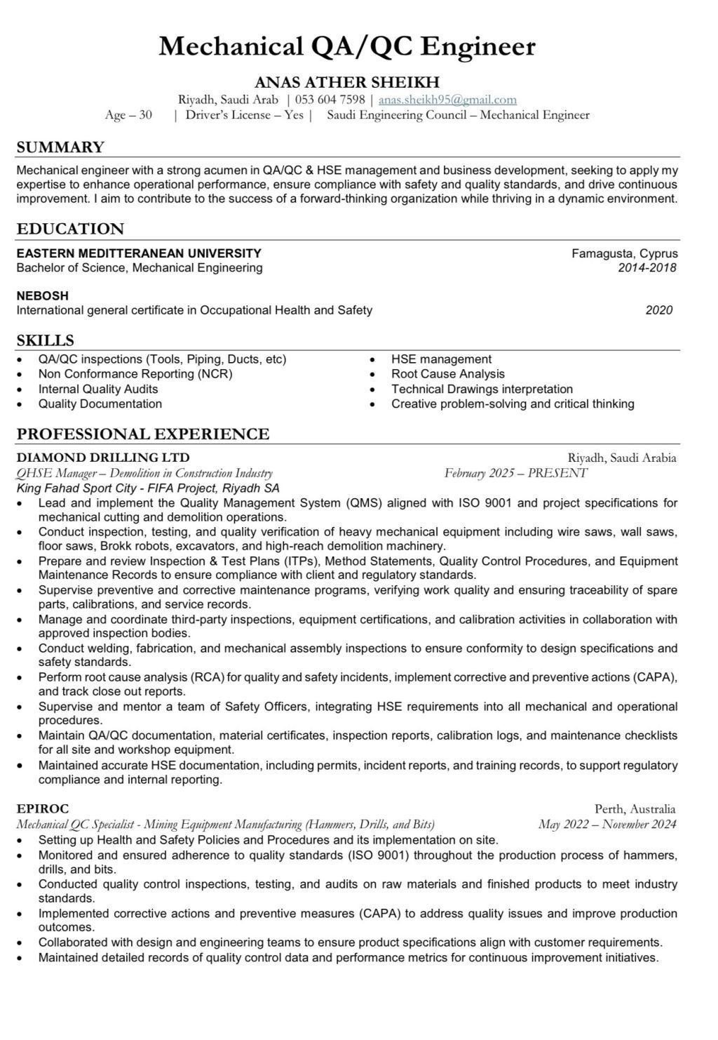 مهندس ميكانيكا خبرة 8 سنين مكتب فني وجودة 5 سنين باستراليا وسنة ونصف في السعودية اقامة ورخصة ساري عملت بالعديد من المشروعات مع العديد من مكتب الاستشاري أتكلم العربية والانجليزية وأردو