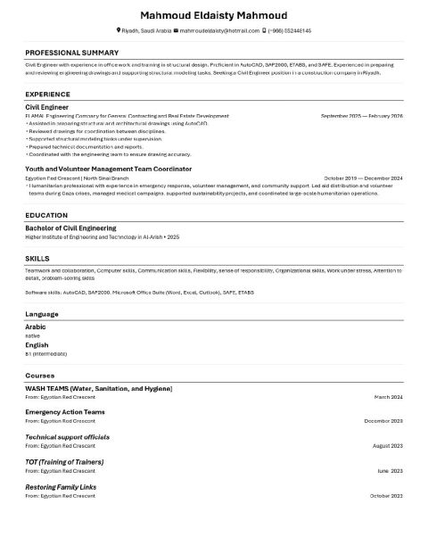 مهندس مدني حديث التخرج ابحث عن فرصة عمل في مدينة الرياض