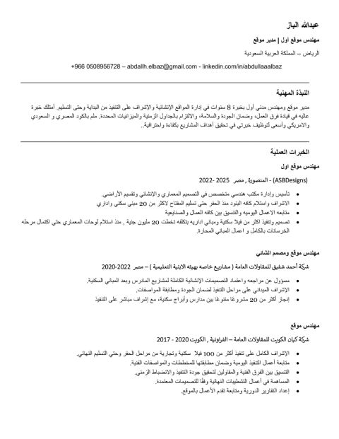 Senior Site Civil Engineer/ Senior Site Manager, certified by the Saudi Council of Engineers, with 8 years of experience in supervision, execution, and site management for construction and building projects