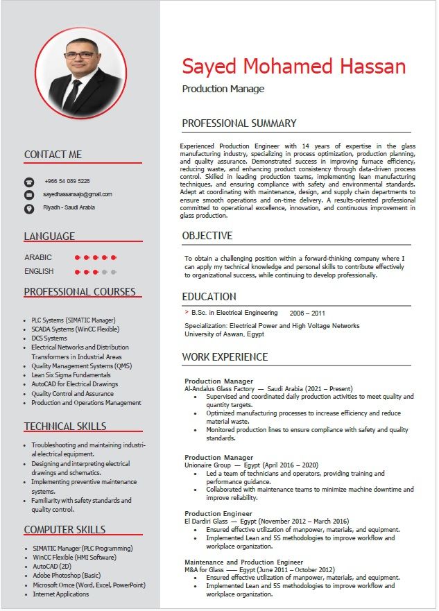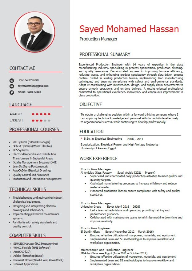 Production Manger with 14 years of experience, registered with the Saudi Council of Engineers, and I have a transferable Saudi residency. Experience in the field of glass factories I am looking for a job