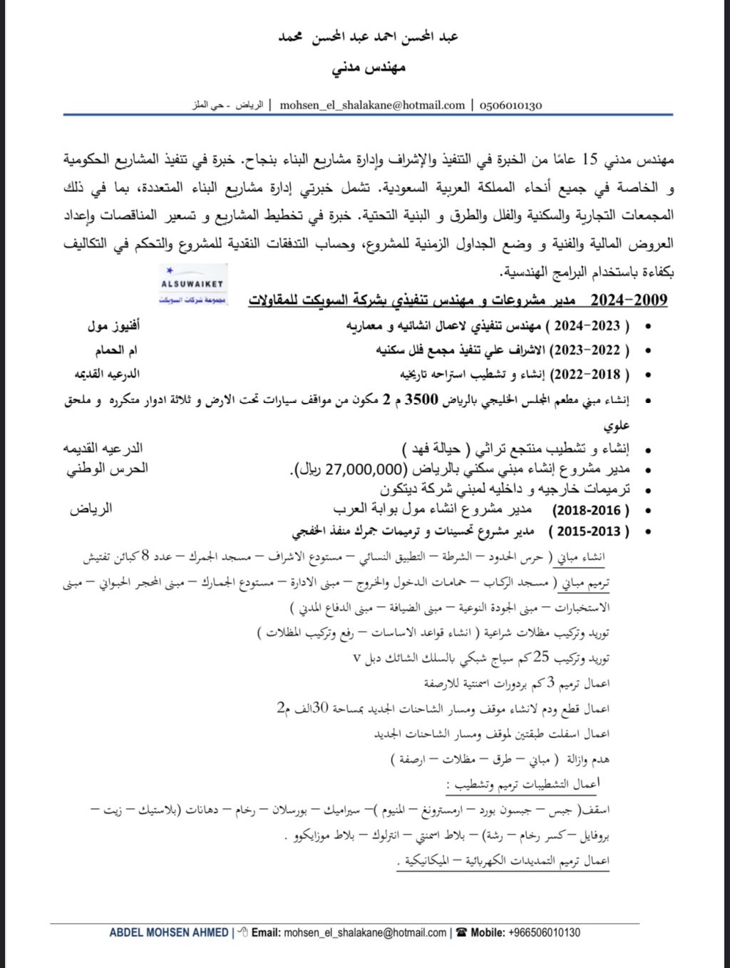 مهندس مدني خبرة 17 سنة ابحث عن فرصة عمل تليق بمستوى الخبرة في إدارة المشاريع الحكوميه والخاصه