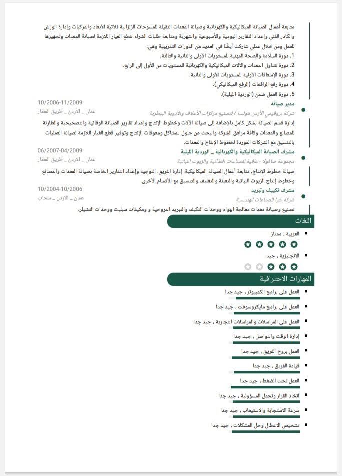 مدير صيانة مصانع ومدير كسارات مهندس أردني حاصل على هندسة ميكاترونيكس وحاصل على دبلوم هندسة كهروميكانيك. ابحث عن وظيفة مستقره في شركة مقاولات أو مصانع مواد غذائية أو مصانع خرسانة ولدي خبرة 19 سنة ك مدير كسارت ومدير صيانة مصانع ومدير ورشة صيانة معدات وسيارات لدى شركات المقاولات والمصانع في السعودية والأردن وسلطنة عمان والكويت. ولدي الرغبة بالعمل ضمن بيئة عمل مستقرة على الاستعداد للانتقال الى أي موقع