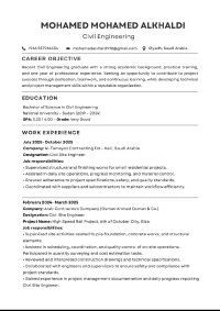 Civil Site Engineer with one year of experience in quantity surveying, project management, and AutoCAD. Skilled in supervising site work and ensuring quality compliance with technical specifications. Based in Riyadh, holding a valid driving license and a transferable residency (Iqama) Available to join immediately and committed to teamwork to achieve project goals