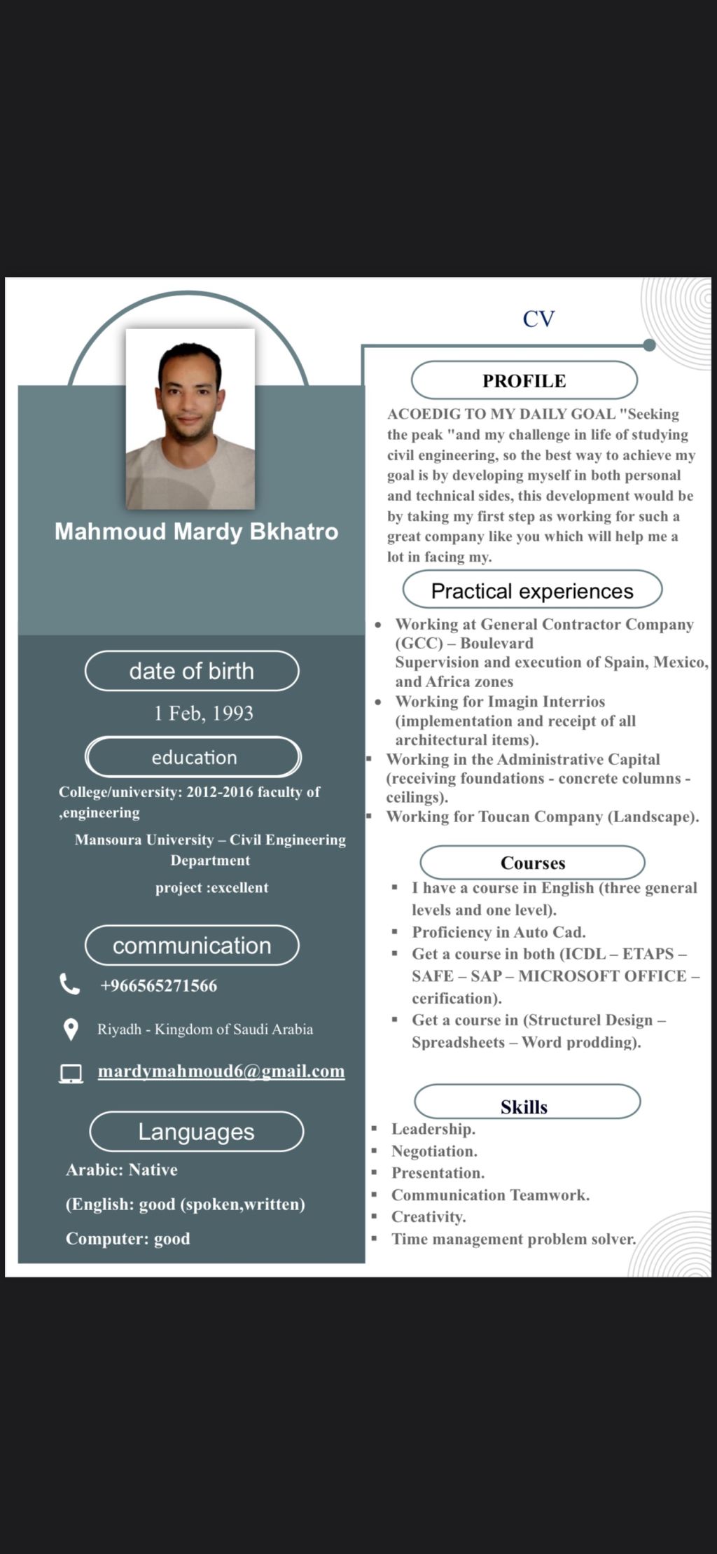 مهندس مدني دفعه 2016 متواجد في الرياض ابحث عن عمل ولدي خبرة في أعمال التشطيبات والترفيه