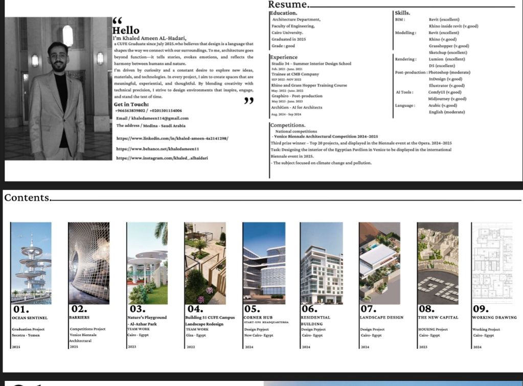 أنا خالد أمين، مهندس معماري، يمني، مقيم في السعودية، خريج من جامعة القاهرة كلية الهندسة المعمارية. ابحث عن فرصة عمل في مجال الهندسة المعمارية في مكاتب وشركات هندسية - تصميم 3D - انشاء وتعديل رسومات تنفيذية - تصميم واجهات - تصميم أثاث - تصميم حدائق ولاند سكيب، خبرة في العمل الحر