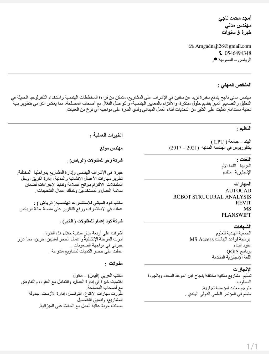 I am a Civil Engineer, Yemen Nationality, graduated from India in 2021. I have practical experience as a Site Engineer in the Eastern Province and Riyadh addition to intermediate experience in structural design using Robot Structural Analysis. I am proficient in several engineering software I am fluent in English I am seeking a job opportunity where I can apply my skills and experience