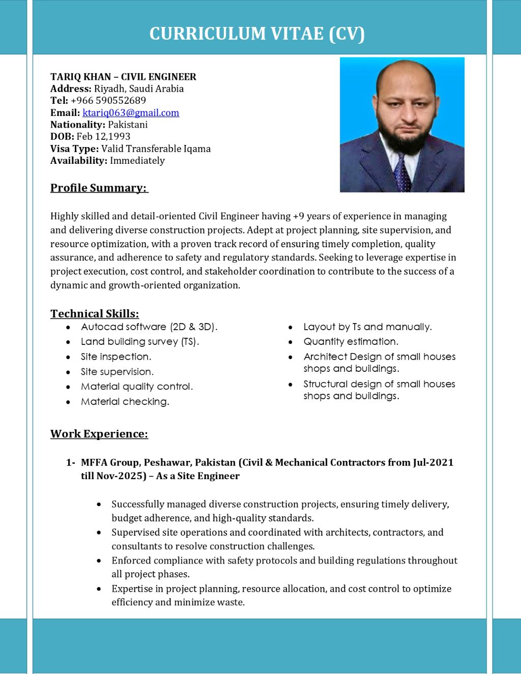 I am looking for a civil engineer job. I have 9 + years experience in construction of high rise building as site engineer and assistant project manager. I am willing to work anywhere in Saudi Arabia