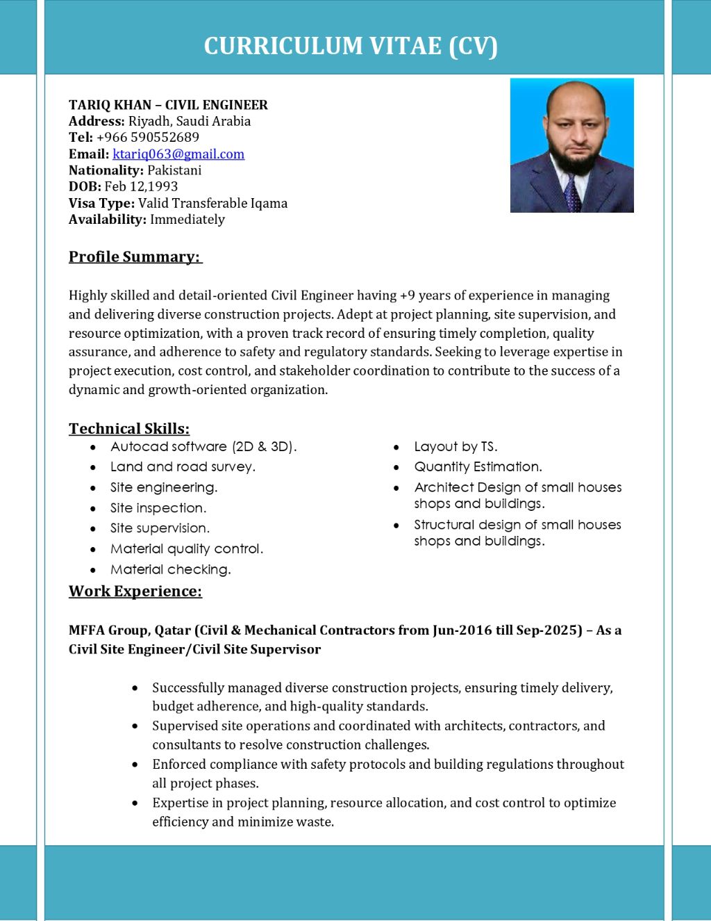I am looking for a civil engineer job. I have 9 + years Qatar experience in construction of high rise building as site engineer and assistant project manager. I have transferable Iqama. I am willing to work anywhere in Saudi Arabia