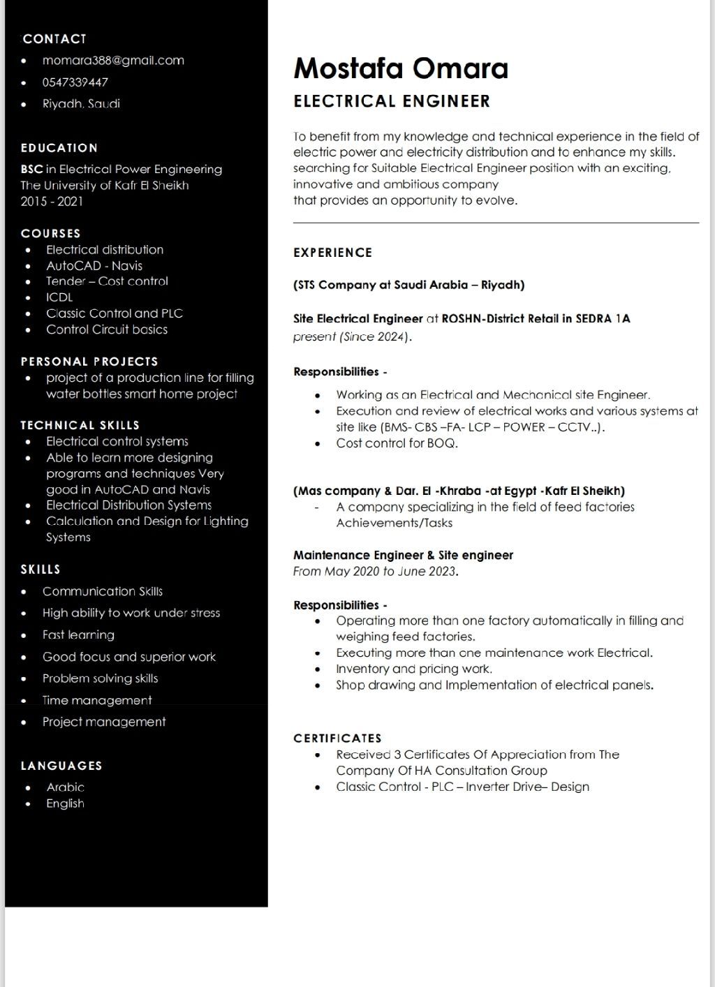 Electrical site engineer looking for new company to benefit more experience for work