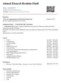 مهندس اتصالات والكترونيات مصري خبرة 6 سنوات في مجال (الشبكات والتيار الخفيف) متواجد في الرياض لدي اقامة سارية لمدة سنة ورخصة قيادة ومسجل بالهيئة السعودية للمهندسين