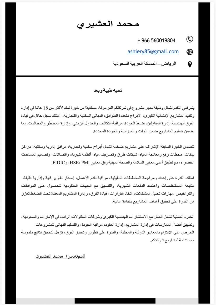 Project Manager - Egyptian Civil Engineer with 18 years of experience, Cairo university, with extensive expertise in engineering consultancy firms such as Khatib & Alami and Dorsch. Highly experienced as a Project Manager for numerous residential projects high rise buildings, villas and infrastructure projects (water, drainage, Roads)