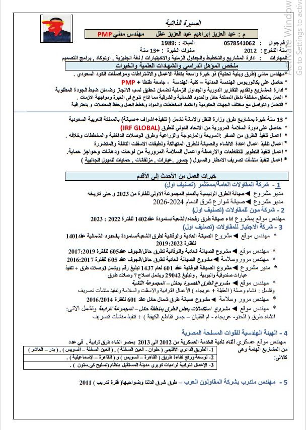 مهندس طرق (صيانة وتنفيذ) خبرة 14 سنة بالمملكة