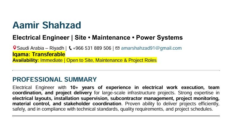 Electrical Engineer/ Supervisor/ Foreman