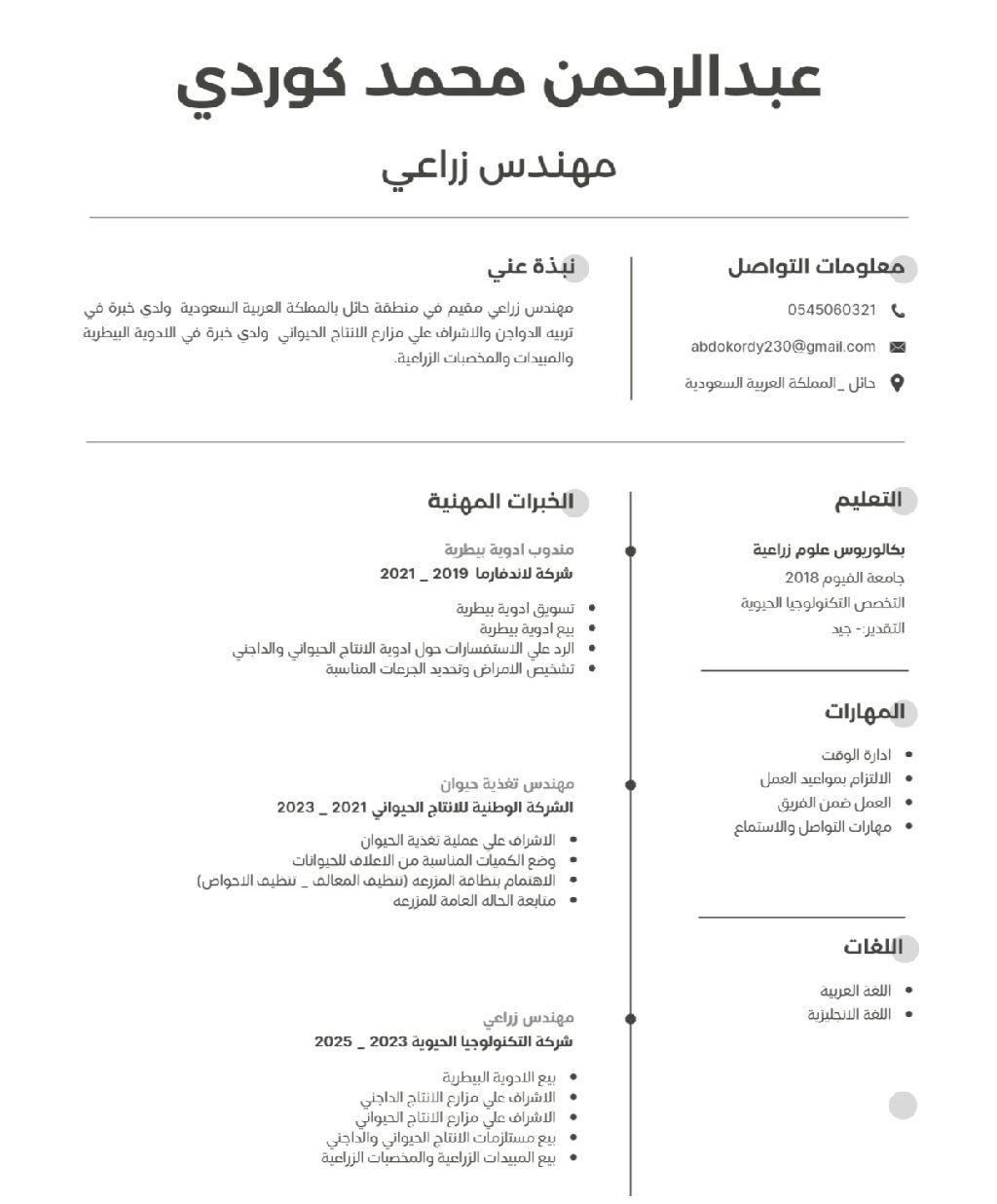 مهندس زراعي لدي خبرة سنتين في مجال المبيدات الزراعية