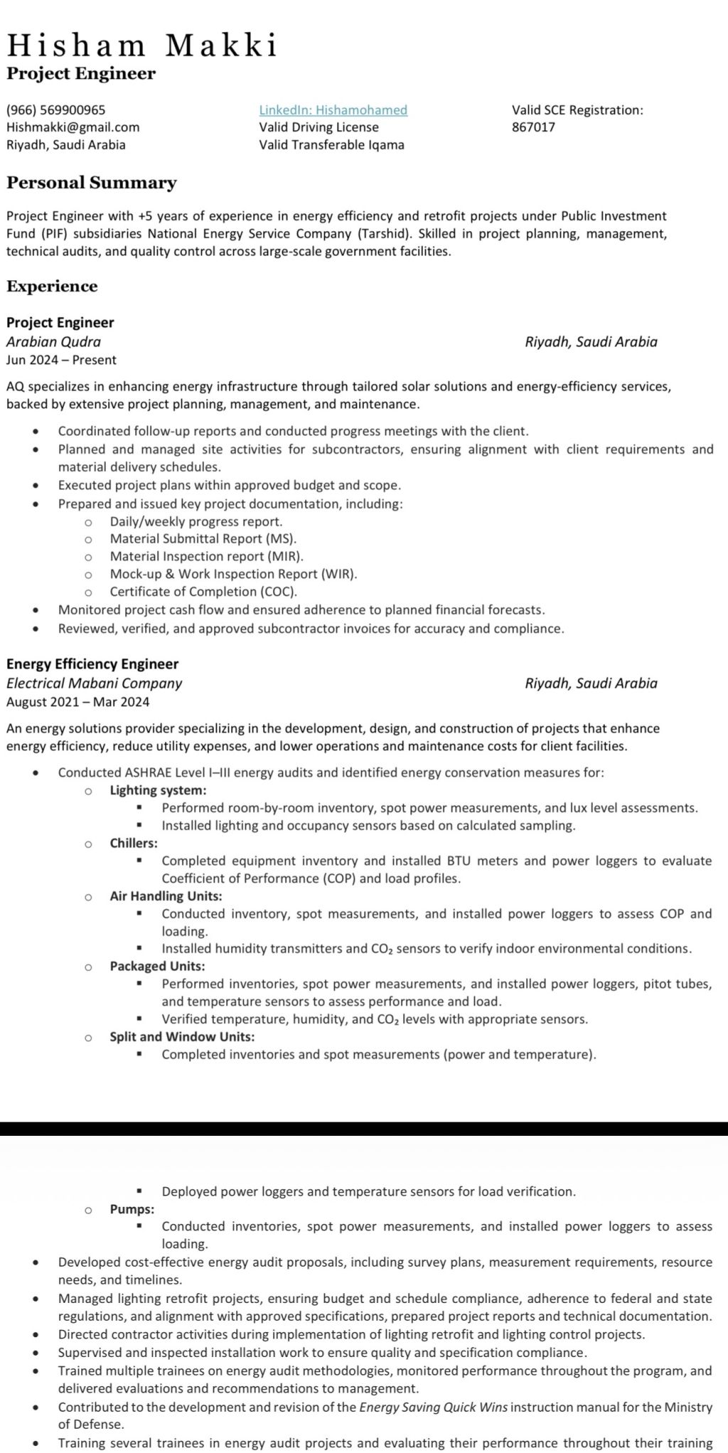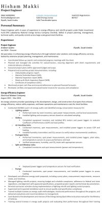 Project Engineer for + 5 year of experience in energy efficiency services and project management