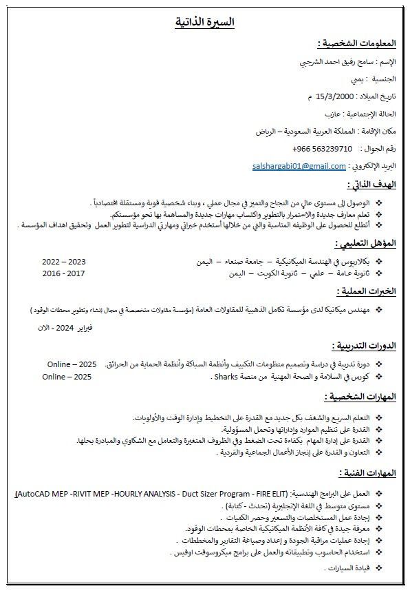 أنا مهندس ميكانيكا ابحث عن عمل يناسب تخصصي مهتم بمجال الفير فايتنج والتكييف والصحية