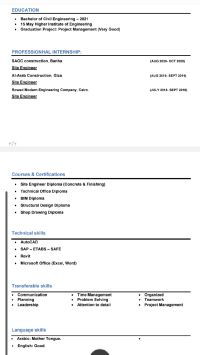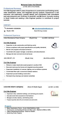 Site Civil Engineer position. I hold a Bachelor’s degree in Civil Engineering (2021) with 5 years of experience in structural and finishing works, Inventory and technical. Including one and a half years in Saudi Arabia. I am proficient in AutoCAD, SAP, and Microsoft Office. I have a transferable Iqama and a valid Saudi driving license, and I am ready to work anywhere in KSA. Please f
