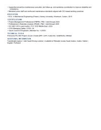 Mechanical Engineer Maintenance & Reliability Heavy Equipment/ Fleet/ Workshop I am looking for a job opportunity in Saudi Arabia. I have 10 + years of experience in heavy equipment inspection, preventive and corrective maintenance, workshop coordination, fleet operations, diagnostics, ISO compliance, and Industrial team supervision. Certifications PMP, PBA, IOSH Managing Safely, ISO 9001 Lead