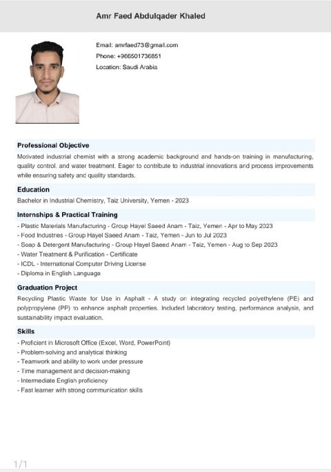 I am an experienced Electrical Engineer with strong background in maintenance supervision, site engineering, and large - scale projects like NEOM. Skilled in electrical installation, testing, commissioning, fault diagnosis, team management, and reporting. Proven expertise in substations, panels, solar systems, and Industrial maintenance. Reliable, safety - focused, and results - driven professional