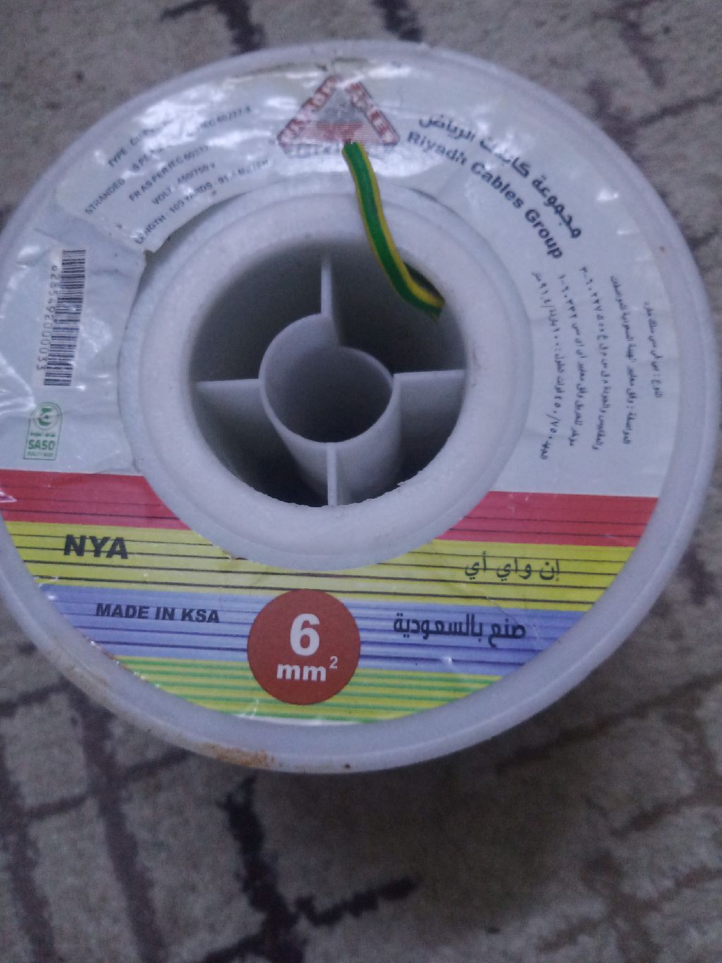 لفة سلك سعودي كهرباء جديد مفرد 91 متر 450 فولت للبيع 370 ريال