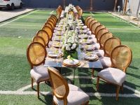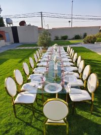 Ahmad Events provides all event services, including chair and table rentals (round, rectangular, wooden, and glass) reception tables, dining tables, service tables, stands, warmers, heaters, stage backdrops, and all types of service for banquets, parties, and events. Located in Al Rawabi, Abdullah Bin Abbas Street. Call us and we'll come to