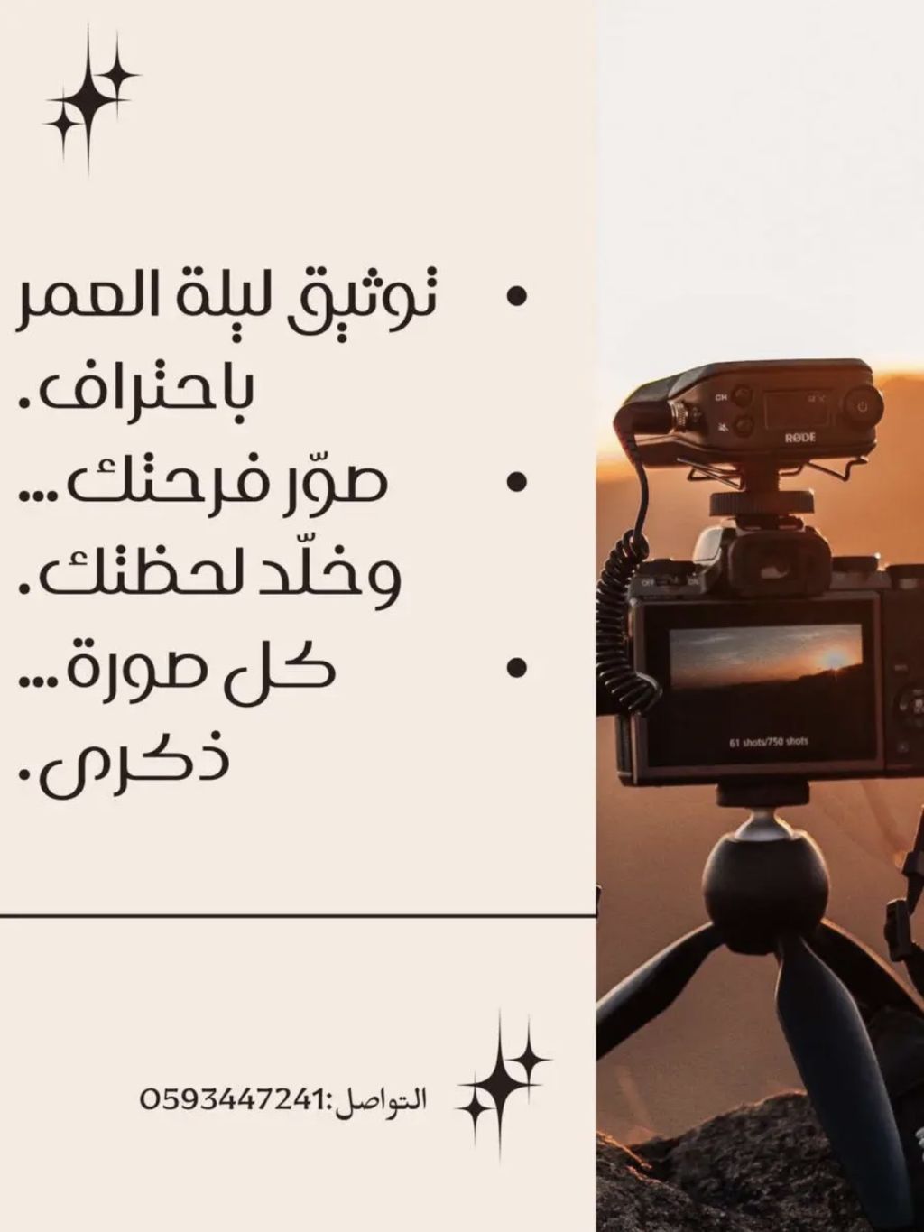 مصور زواجات - تصوير فيديو وصور للزواجات والحفلات التقط لحظاتك واجعلها ذاكرة لا تنسى. خدمة احترافية في تصوير الزواجات وتوثيق أجمل اللحظات. تصوير الحفلات والمناسبات الخاصة. جلسات بورتريه وبوكيه ابداعية. فيديوهات سينمائية بجودة عالية. عدسة احترافية اخراج فني مبتكر تفاصيل تحكي بصمت الصورة سواء كانت ليلة العمر أو مناسبة خاصة ستكون النتيجة عملا فنيا ينبض بالجمال. للحجز والاستفسار