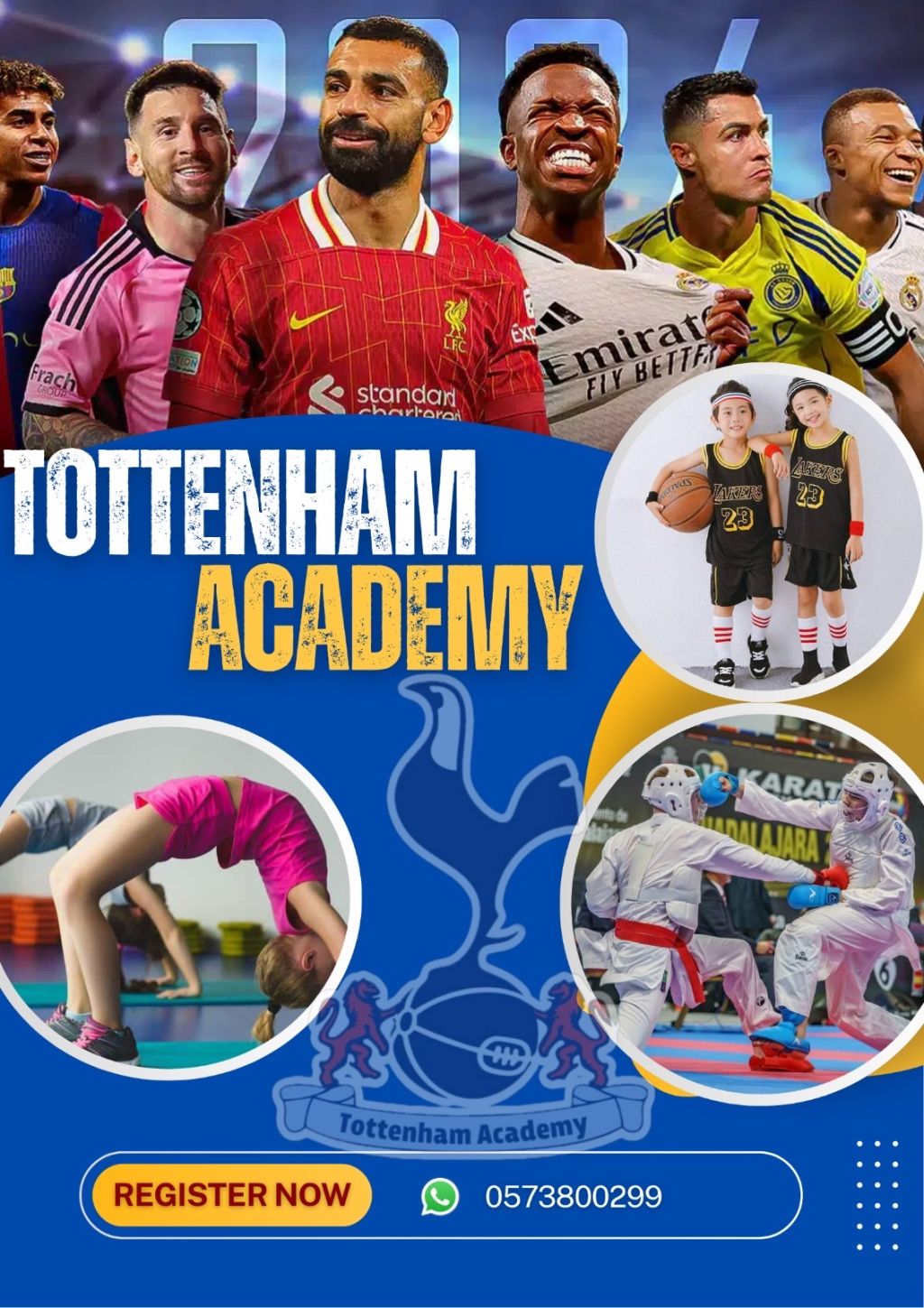 تعلن أكاديمية توتنهام الرياضية عن افتتاح فرعها الجديد في حي العليا في الرياض بجانب فرع الورود. تقدم تدريبا احترافيا في كرة القدم، السلة، الجمباز، والكاراتيه لجميع الأعمار باشراف مدربين معتمدين. العليا مدارس شعاع العليا الورود مدارس الأفق