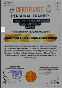 اسمي محمد 25 سنة، مصري، خريج كلية التربية الرياضيه بتقدير جيد جدا. خبرة في التدريب الرياضي لمدة 3 سنوات العمل كمدرب جمباز لمدة 2 سنوات حاصل على كورس التدليك الرياضي